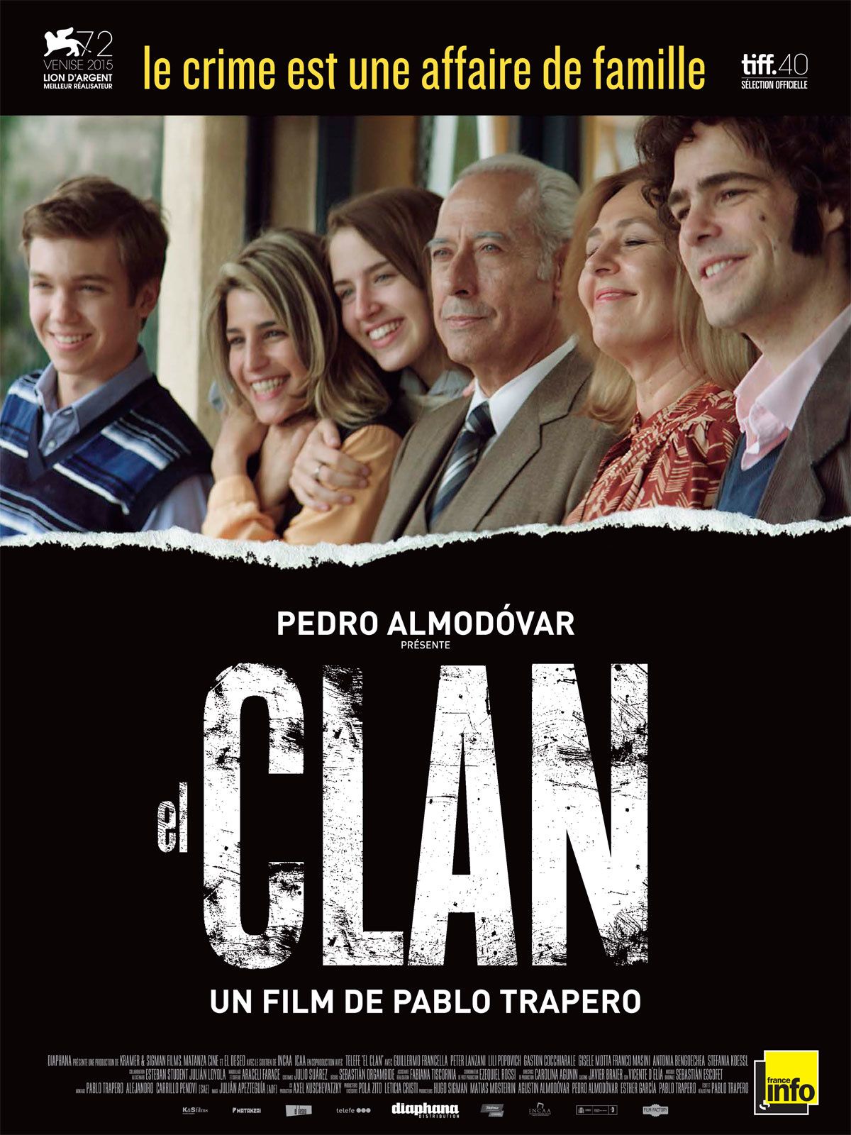 De Pablo Trapero, j'avais beaucoup aimé Carancho, son avant-dernier film. Je partais donc assez confiant pour ce El Clan. On est rarement déçu par ce qui vient d'Argentine et le sujet semblait croustillant. Cruelle déception à l'arrivée. Je n’ai jamais accroché. Je ne sais pas si c'est l’histoire en elle-même, la construction en flash-backs ou la mise en scène, mais je me suis ennuyé pratiquement tout le long. Seul le dernier quart d'heure est à peu près prenant. Tous les acteurs sont vraiment convaincants mais cela ne suffit pas. Ça sent un peu le Scorsese mais on en est loin... Il y avait pourtant quelque chose de très intéressant à faire avec cette histoire vraie au sortir d'une des périodes les plus sombres qu'ait connu l'Argentine. C'est dommage.